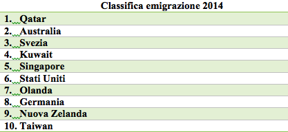 In conclusione – e più seriamente: è chiaro che la decisione di dove emigrare è molto personale, e dipende in gran parte dalle opportunità disponibili per il singolo individuo. Però, pensiamo che sia interessante sapere quali paesi, in linea generale, sono più “attraenti”; specialmente perché alcuni di quelli in testa alla nostra “classifica provocatoria” sono forse inaspettati, e anche perché sette su dieci non sono europei. Come diceva un comico d’altri tempi: meditate gente, meditate!