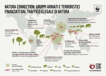 C'è un filo rosso che collega il terrorismo e i gruppi armati ai crimini di natura, primo fra tutti il commercio di specie selvatiche, il cosiddetto “wildlife trade”, che diventa per queste formazioni una fonte di finanziamento. Dai separatisti del Bangladesh affiliati di Al Qaeda al Lord Resistence Army, gruppo ribelle di guerriglia di matrice cristiana che opera principalmente nel nord dell'Uganda, nel Sudan del Sud, nella Repubblica Democratica del Congo e nella Repubblica Centrafricana; da Al Shabaab alla stessa Al-Quaeda.